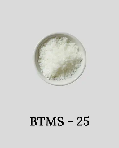 Behentrimoniummethosulfaat, of kortweg BTMS, is een kationische (positief geladen) emulgerende was afkomstig van koolzaadolie. Het is een geweldige natuurlijke vervanger voor traditionele siliconen als u op zoek bent naar die luxe conditionering voor uw haar.